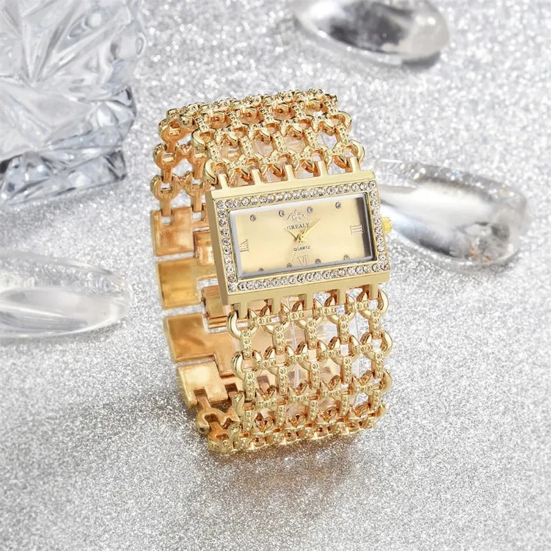 Luxury Ladies Diamond Bracelet Quartz Watches Fashion Gold Stainless Steel Women Clock Dress Watch